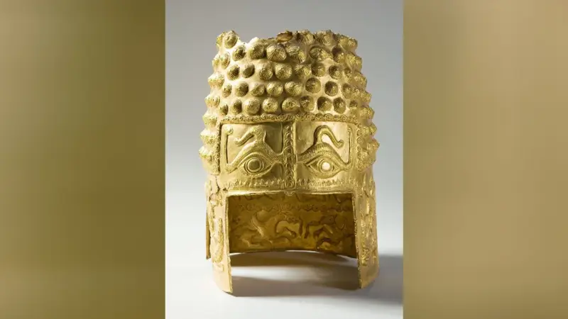 In a press release on its website, Drents Museum described the Helmet of Cotofenesti — which was discovered in a Romanian village almost a century ago — as a “masterpiece.” Its design features mythological scenes and a pair of eyes, located above the wearers’, that were thought to deter enemies during battle while protecting against the “evil eye.”